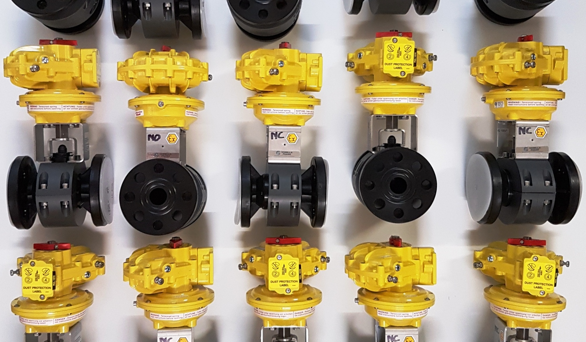 Alle Schwenkantriebe sind mit einer widerstandsfähigen, eingebrannten Epoxyharz-Pulverbeschichtung versehen und mit Edelstahlschrauben ausgerüstet. Der Arbeitswinkel lässt sich durch die verstellbaren Endanschläge in beide Drehrichtungen einstellen.