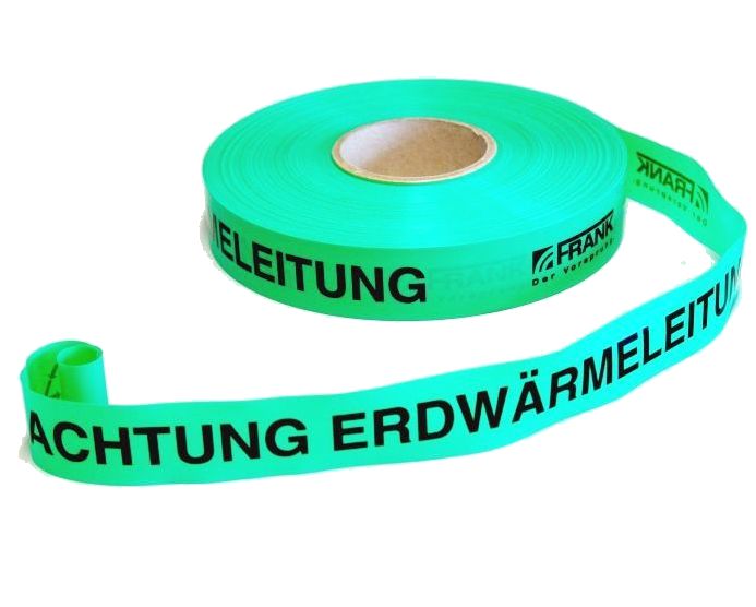 Das FRANK Erdsondenrohr ist als solches gekennzeichnet, um bei Erdarbeiten zu erkennen, welche Leitung freigelegt wurde. Um Beschädigungen vorzubeugen ist die Verwendung des FRANK Trassenwarnbandes unbedingt zu empfehlen.