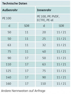 aus PE 100 oder PP-R eingesetzt. Durch den profilierten Aufbau von Wickelrohren ist es möglich, eine Art Sandwich-Profil mit innenliegendem Überwachungsraum zu fertigen. PKS®-Secutec hat aktuell alle Prüfungen erfolgreich bestanden und