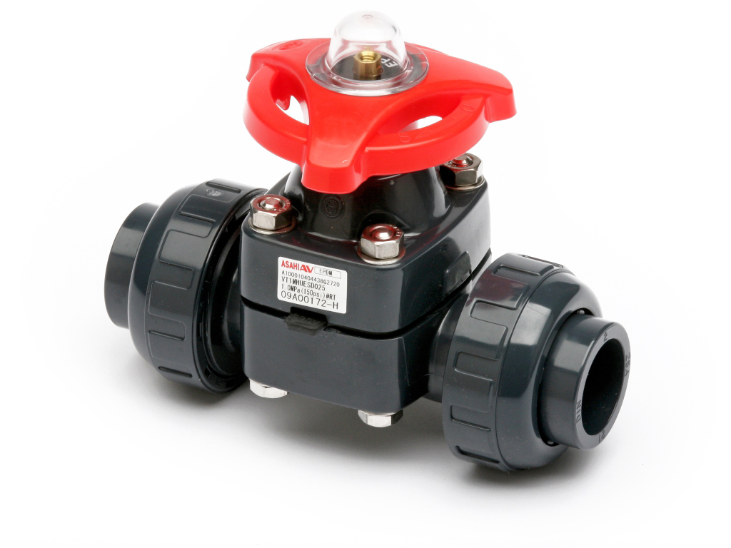 Da nur Grundkörper und Membran medienberührt sind, eignen sie sich hervorragend für Anwendungen mit aggressiven Medien. Durch Ihre Konstruktion können unsere ASAHI Membranventile auch bei feststoffhaltigen und abrasiven Medien eingesetzt werden. Für Anwendungen mit heißem, feuchtem Chlor – wie beispielsweise in der Chlorelektrolyse – liefern wir Ihnen weltweit einzigartige Membranventile aus EL-PVDF. Bei unseren Membranventilen ist eine Schließkraftbegrenzung standardmäßig vorhanden.
